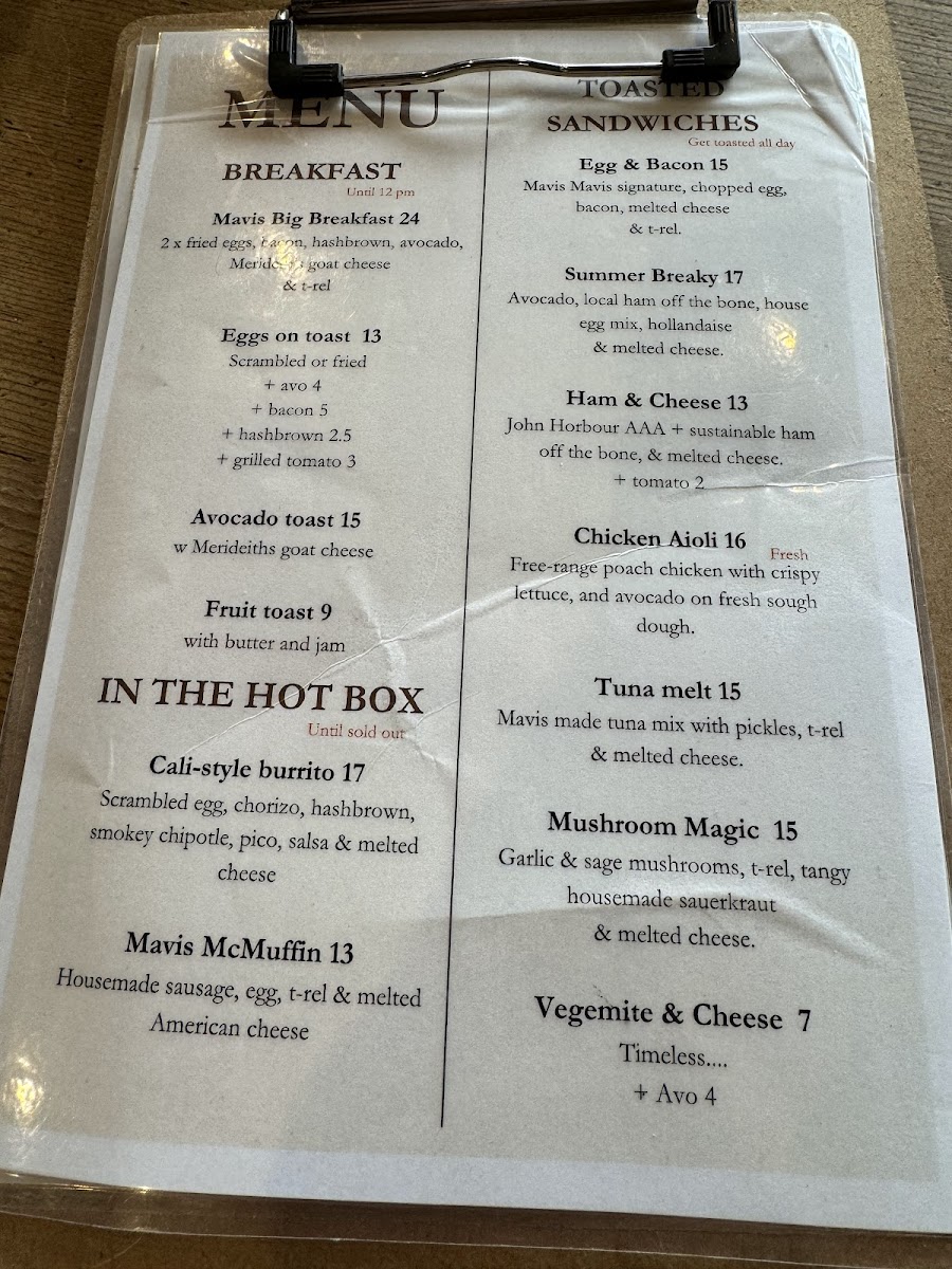 At Mavis Mavis, the toasties steal the show, featuring crowd favorites like the Egg & Bacon and the mouthwatering Reuben, with prices ranging from A$7.00 to A$16.00. Each bite reveals a commitment to quality and flavor, with standout reviews praising their deliciousness.